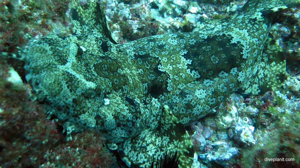 The much more ornate spotted wobbi – which has similar bands to the banded, but just looks like it’s grown an additional layer of lichen. (Though given the amount of time these guys spend just lying around on ledges, that wouldn’t surprise me).