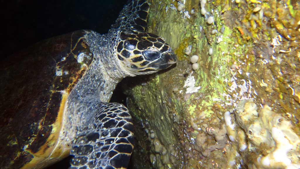 During the surface interval aboard the well-equipped ‘Terror’ we’re served soup and crackers and coffee and cake, and go through the names of all the critters we’ve seen. This to a level of detail which distinguishes the wobbes into three classes: the banded, the spotted and the ornate.