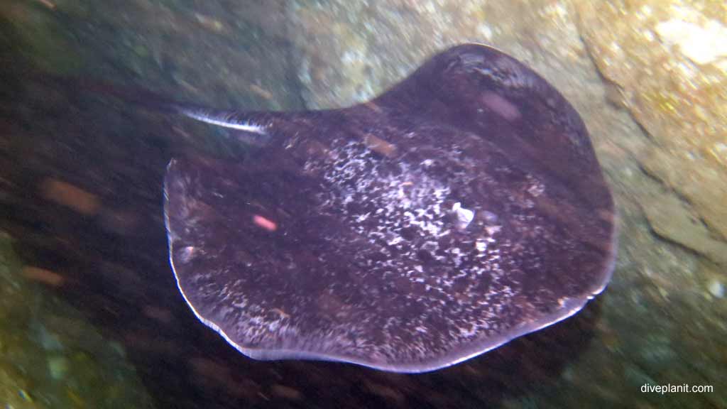 In the morning there will likely be a few grey nurse still circling, and passed the rocks on the shell grit ‘beach’ approach carefully and look down the slope – often a bull ray or too will be hanging around. Look up and you may see an eagle ray.