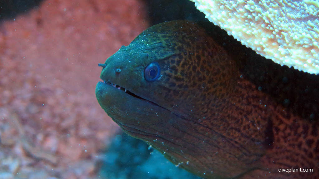 Moray up close diving No Mans Land at Yasawa Islands Fiji Islands by Diveplanit
