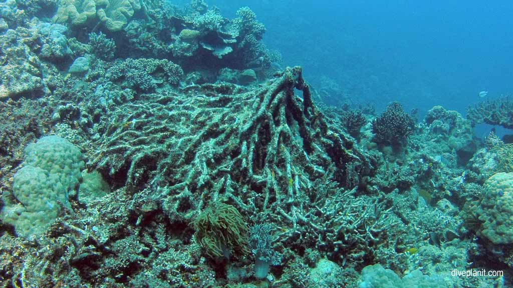 Some damage from Cyclone Yasi is still clearly to be seen.  There was a branch coral completely broken and up ended – though still providing a home to fish.