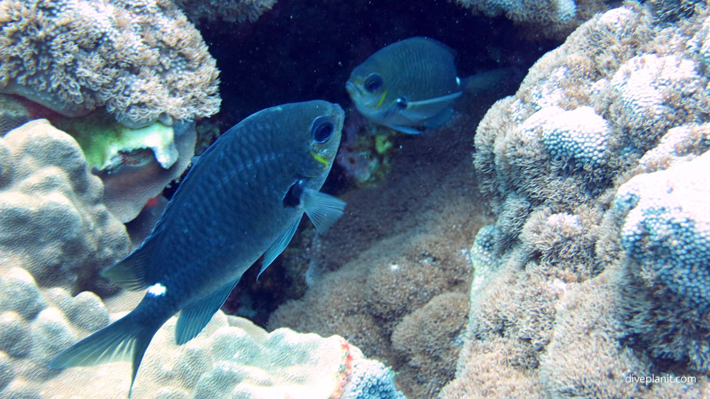 In the coral grit you’ll find plenty of Goatfish – including the common Black-spot.