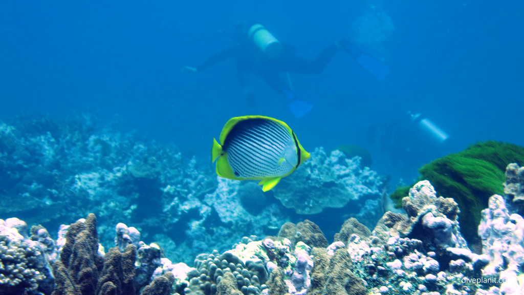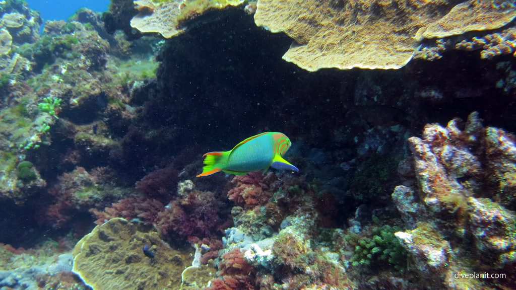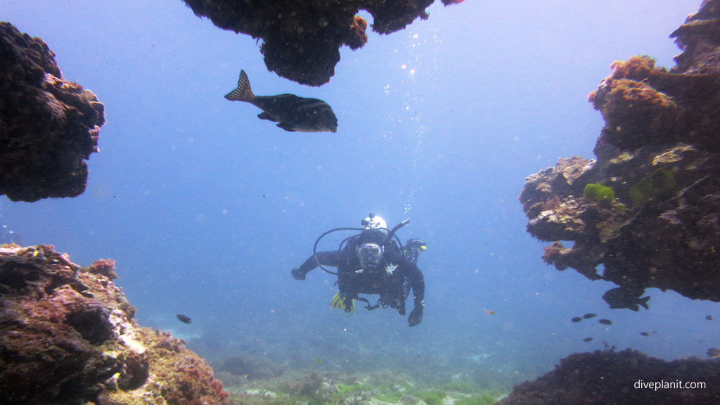 At The Arch, the depth ranges from 6 – 16 metres. There is a crevice – a large gutter that slices the reef in the direction of the island to the arch, so navigation is quite easy.