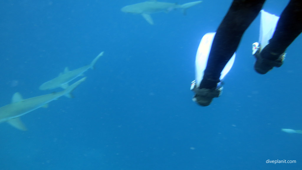 At Erskine Valley, Galapagos Whaler Sharks come into check us out even as we start to descend the mooring line