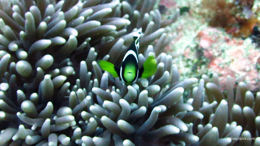 Also hiding, in this case amongst the anemones, you find the endemic McCulloch’s anemonefish.