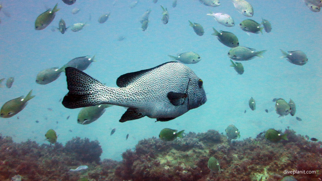 And as spots seem to be fashionable on Lord Howe, we run into this Freckled Porcupine fish – who’s not too sure he’s happy to see us.