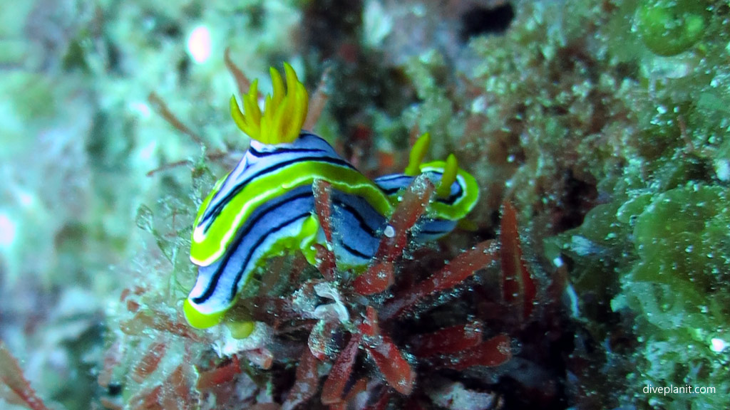 The images in this description come from three different sites on the outside of the reef in the north, in the middle at the dive site known as The Arch, and the south at Erskine Valley, the valley that separates Mt Lidgbird and Mt Gower. This is my favourite kind of diving: around 18 m where the light is still good and the terrain varied. These first fish were spotted at the northern end outside the reef.