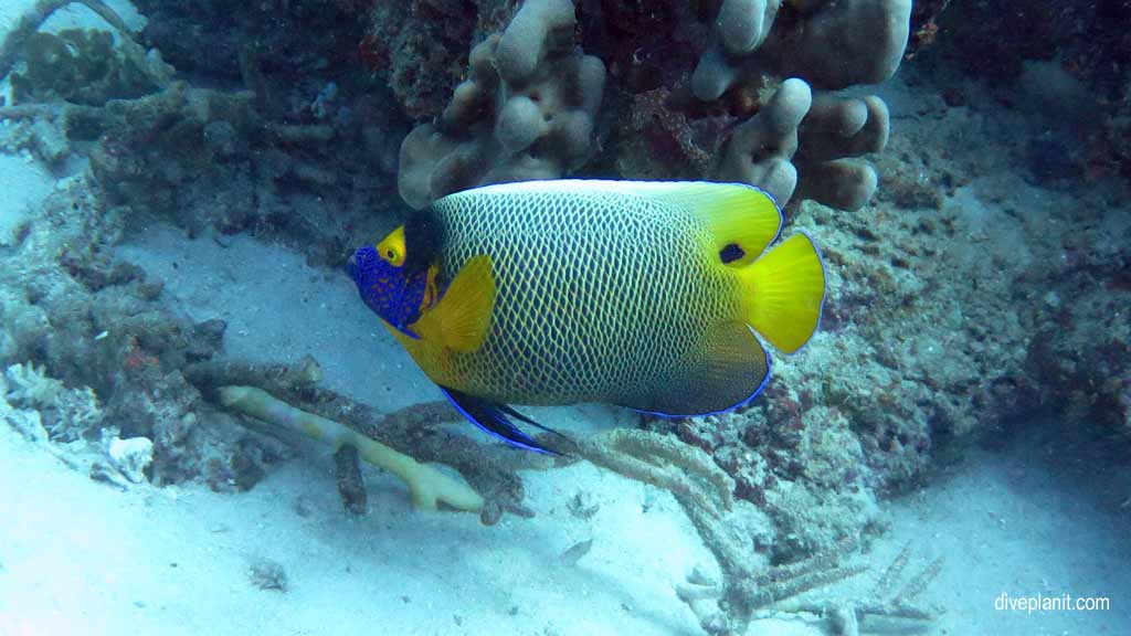 The blue faced angelfish is pretty easy to identify. Found nowhere else in Australia except the Great Barrier Reef.