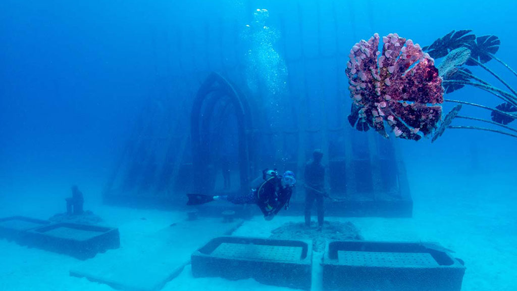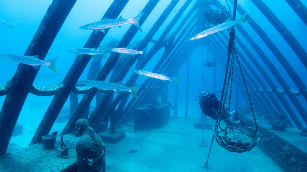 This beautiful installation, inspired by both reef and rainforest, is the second of a planned four structures to be installed as part of deCaires Taylor’s Museum of Underwater Art.