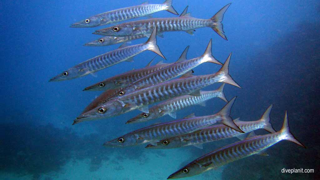 Lunch is a generous affair with not just the cold meats and salad, but tandoori chicken and roast beef. After lunch the boat moves again and we depart for the third dive – again in the tender – to the best part of the reef where a school of barracuda have been sighted previously. To our delight we’re dropped right next to them. (Sandbox on Beautiful Mooring: 1.40pm, 11m for 48 mins).