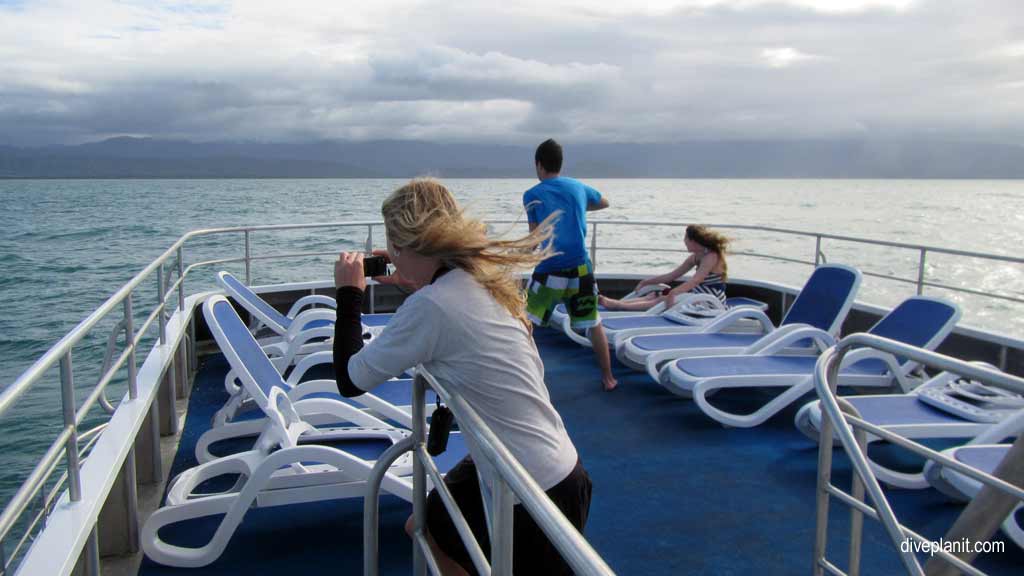 Boarding commences at 8:40am at the Reef Marina for a 9am departure. You can leave your shoes in a crate on the wharf as you don’t need them until your return. As you step on board, all snorkelers and divers are fitted with basics which they keep for the day. Light refreshments are served before the 9am departure.
