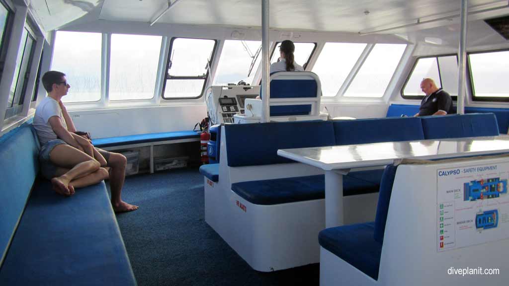 Transfers from the Port Douglas area are included, as is morning and afternoon tea and lunch. As Calypso is so spacious, the galley area and admin desk are separated, so tea and coffee are available all day as long as the boat is not moving. Underwater cameras including flash cameras for diving, caps, shirts, fish ID cards and charts are on sale, and there is the obligatory on-board photographer snapping away. Soft drinks, beer, wine, and champagne can be purchased onboard. They charge the reef tax at face value: $3.50, unlike the $20 some operators hike it up to.