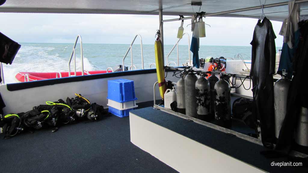 On returning to the boat, I treat myself to a slightly longer hot shower, and dress dry for afternoon tea and the trip back. Our dive guide comes by with the dive sites and times, and dives are written up, and log books signed. The on-board photographer assists in the naming of the fish. We arrive punctually back at the marina at 4.30pm.