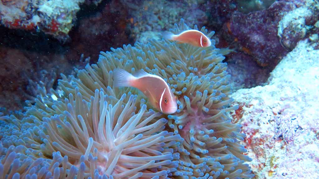 The journey to the reef is only 80 minutes, and by 10.15am we’re on the dive deck and trying on wetsuits. The staff have already set up tanks and BDCs having guessed (correctly) our sizes and air consumption. Divers always depart the boat first, and our group is underway quickly. My dive log for the first dive at Bashful Bommie was 10.45am, 17.5m for 46 mins. (The reef is such that you can do your safety stop on a 5m part of the reef).