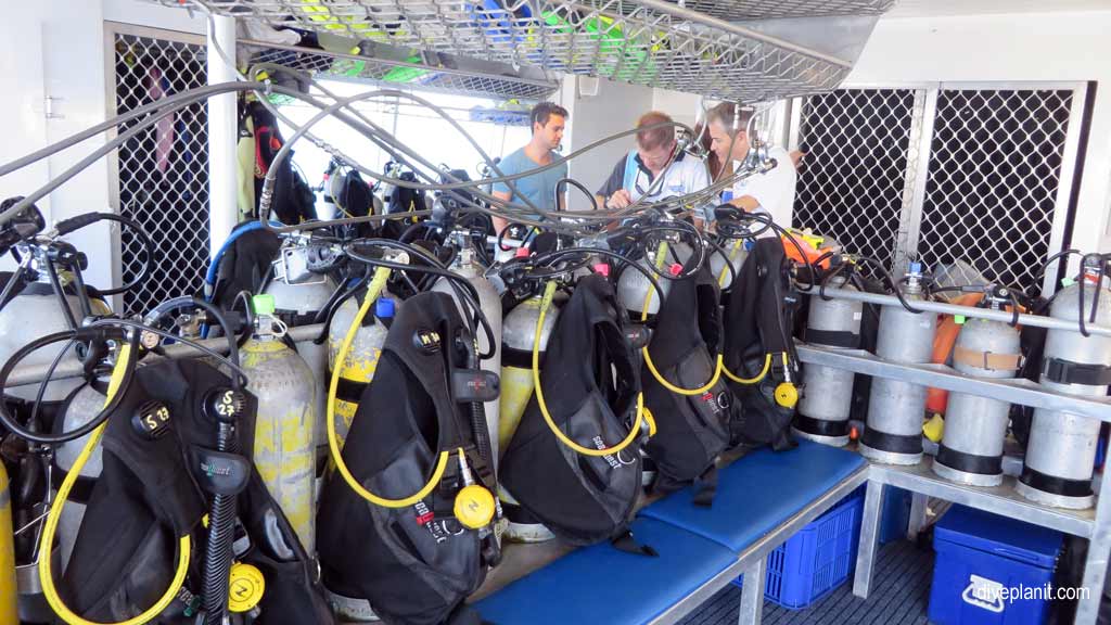 Divers go before snorkelers, so there’s plenty of space on the dive deck to gear up and go.